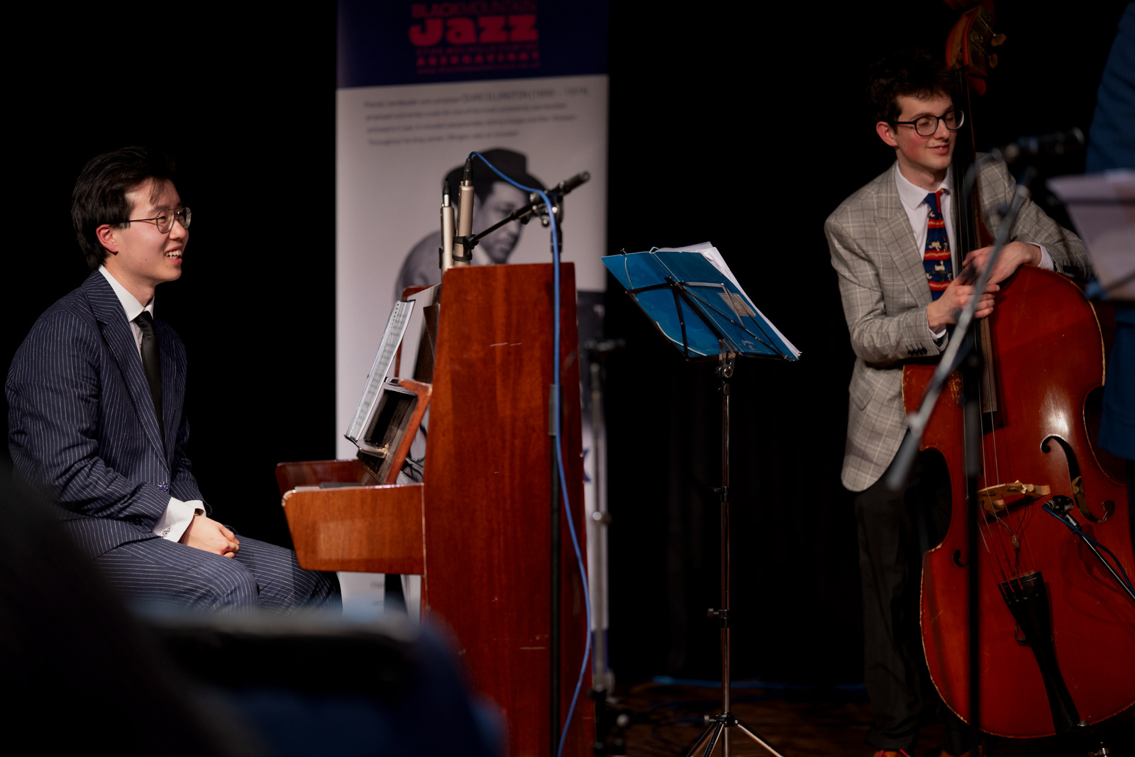 Event photography from the Patrick Barrett-Donlon Quartet at Black Mountain Jazz Club, Melville Centre, Abergavenny, on January 26, 2025. Featuring Patrick Barrett-Donlon on drums, Newman Tai on piano, Benedict Stephens on double bass, and Huw Llewellyn on trumpet. Capturing the essence of the 'Leading From The Back' performance, honoring jazz rhythm section greats.
