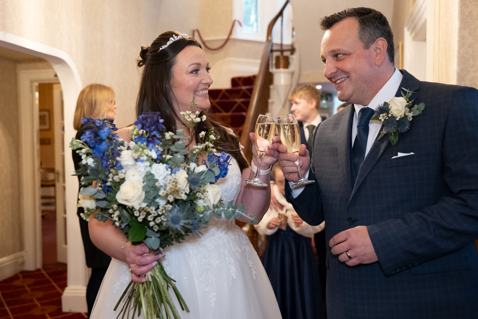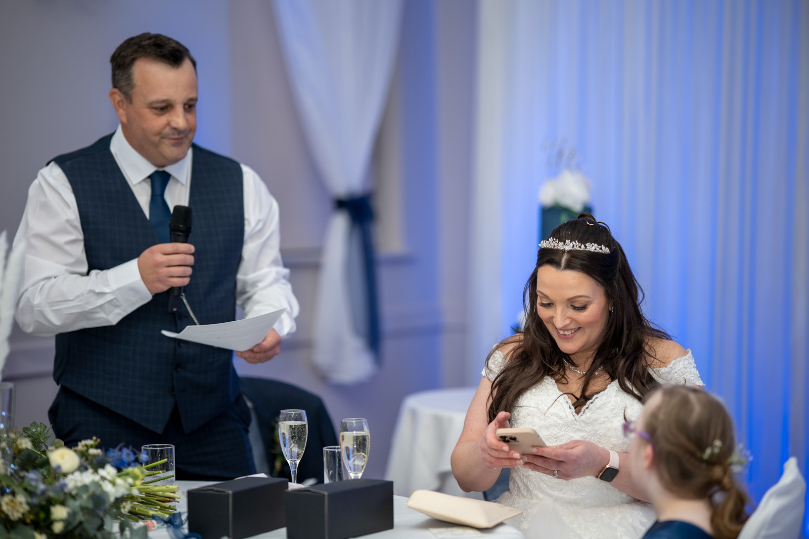 A joyful full-day wedding at Glen-yr-Afon House Hotel, Usk. From bridal preparations with hair and makeup to the ceremony, breakfast, and evening disco, this gallery captures the laughter, love, and celebration of Sarah and Andy's special day